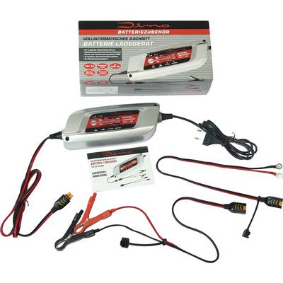 Csak a töltési eljárást kell a „Mode“ gombbal kiválasztani, és a mikroprocesszor vezérelt készülék minden teljesen automatikusan intéz: az üres akkuk újraélesztésétől a töltési ciklus lezárásáig, és a feltöltött akkuk fenntartó töltéséhez. A Dino KRAFTPAKET töltővel az akkuk közvetlenül a járműben is feltölthetők. Nem szükséges a járműakku fáradságos kiszerelése a járműből. A Dino Kraftpaket alkalmas minden általánosan használt 12 V-os savas ólomakkuhoz (normál,Start/Stopp,AGM,zselés,CaCa,karbantartásmentes, nyitott). Ajánlott akkukapacitások: 10 Ah - 120 Ah. Fenntartó töltés 200 Ah-ig. Négy töltőprogram között lehet választani (Auto,motorkerékpár,fagy,AGM) A Dino akkutöltő készülék három speciális töltési móddal rendelkezik. A frissítő mód meghosszabbítja a gépkocsi akku teljesítőképességét és élettartamát. A fagy mód alkalmazásánál a töltési folyamatot az alacsonyabb hőmérsékletekhez illeszti. Az AGM mód a töltési folyamatot speciálisan az AGM akkukhoz igazítja. A teljesen automatikus töltés nyolc töltés lépésben történik. (1. A szulfatálás feltörése, 2. Lágy (soft) indítás, 3. Töltés 80%-ig, 4. Töltés 95%-ig, 5. Kapacitás teszt, 6. Frissítés 100%-ig, 7. Fenntartó töltés 100%, 8. Pulzáló töltés 95-100%). Két kábel gyorscsatlakozókkal (tartós töltőkábel és töltőkábel csipeszekkel) van mellékelve a fröccsenő vízi és por ellen védett készülékhez.