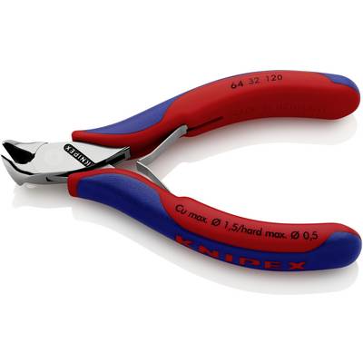 Alkalmazás (fogók): Elektronika- és finommechanika · Anyag: Szerszámacél · Anyagjellemző: Edzett,Polírozott · Fogó jellemzők: Fazettával · Gyártói szám: 64 32 120 · Max. vágási érték, közepesen kemény drót: 1 mm · Méret, hossz: 120 mm · Szabvány: DIN ISO 9654 · Súly: 92 g · További műszaki adatok: fejméretek A 11,00 mm · B 10,00 mm · D 7,00 mm · C 17,00 mm · méret 15°-os szög · Típus: Homlokcsípőfogó · Vágási érték (max.) kemény drót: 0.5 mm · Vágóerő: 56 HRC · Vágóérték (max.), puha drót: 1.5 mm