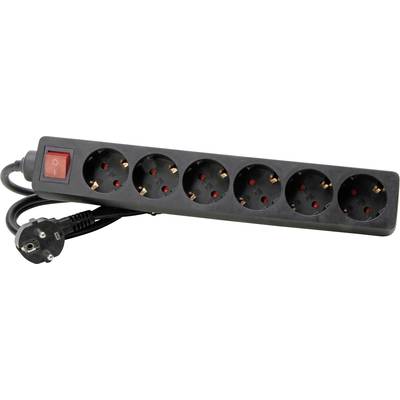 Műszaki adatok: Alkalmazási terület: Beltér · Anyag: Műanyag · Dugaljak száma: 6 · Hálózati csatlakozó típus: Védőérintkezős · Hálózati elosztó jellemzők: Kapcsolóval · Kábel típus DIN/VDE szerint: H05VV 3G 1,5 mm2 · Kábelhossz: 1.40 m · Működés jelző: Optikai · Szín: Fekete · Termék típus: Elosztó kapcsolóval · További műszaki adatok: 16 A · Védelmi típus: IP20 · Üzemi feszültség: 230 V