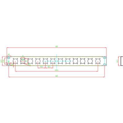 Magasságegység (ME): 1 ME · Méret, hossz: 483 mm · Méret, magasság: 11 mm · Méret, szélesség: 44.5 mm · Patch panel kivitel: Alkatrészek nélkül · Specifikáció (pl. CAT5, CAT6): Szereletlen · Termék típus: Patchbox előlap
